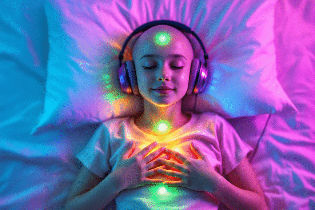 Canções vibracionais que utilizam frequências específicas para harmonização emocional e energética das crianças.