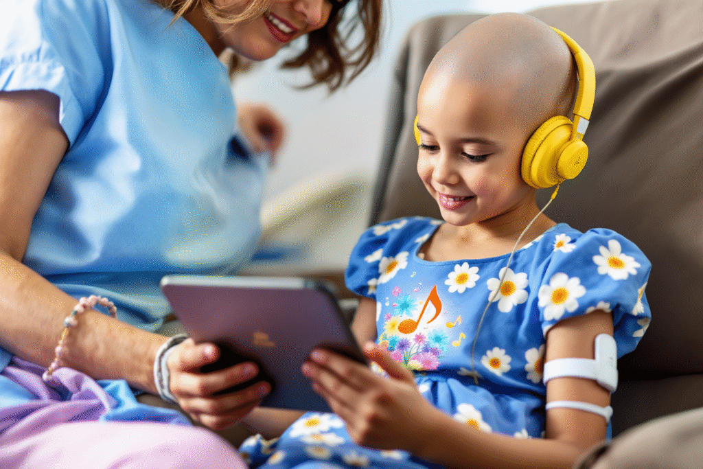 Desenvolvemos todo o processo desde a composição sonora, criação audiovisual, roteiro, gravação, edição e organização de conteúdos terapêuticos personalizados para pacientes oncológicos, no formato digital. Este tempo exclusivo permite o desenvolvimento de materiais de alta qualidade, alinhados com as necessidades específicas das crianças atendidas.